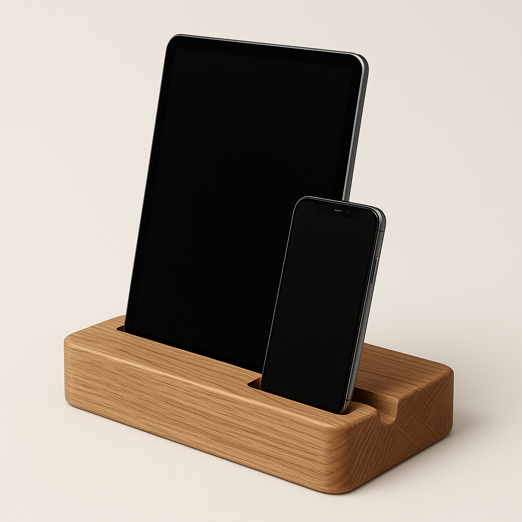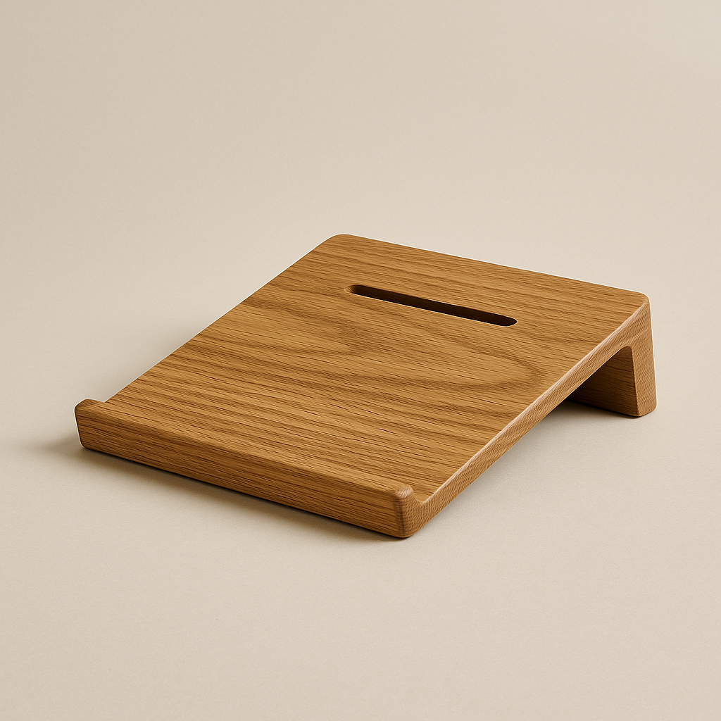 The Zenith Box includes two stands of your choice and a pen holder. Each piece is made from natural wood, creating a unified and stylish workspace look. The stands are suitable for a phone, tablet, or laptop. The pen holder helps keep small items within reach. The wood has a pleasant texture and natural grain. The set is easy to arrange on a desk, creating an organized space. A practical choice for those who value natural materials and convenience.